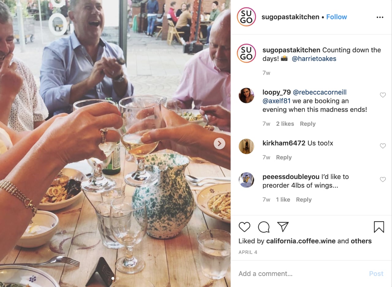 We love how independent Italian eatery Sugo Pasta Kitchen uses customer photos to engage with their following whilst they’re closed for business: