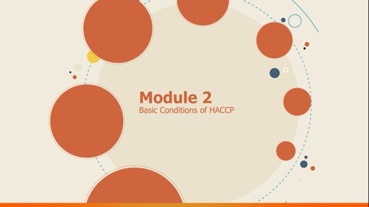 Circle graphics with text that reads: Module. 2 - Basic Conditions of HACCP