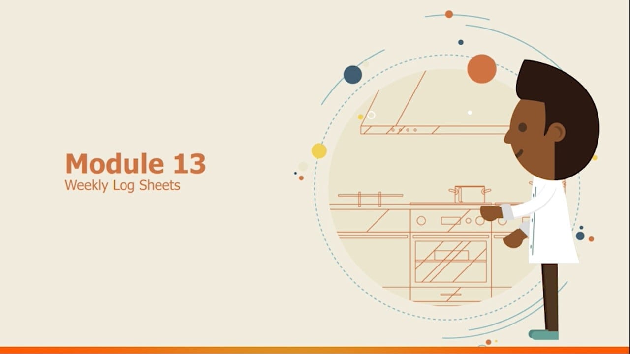 Cartoon chef with text that reads: Module 13 - Weekly Log Sheets