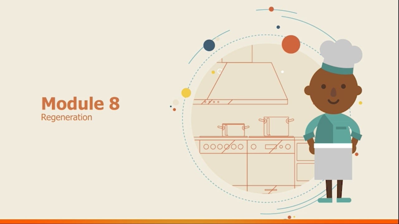 Cartoon chef with text that reads: Module 8 - Regeneration.