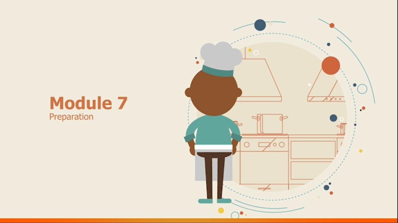 Cartoon chef with text that reads: Module 8 - Preparation.