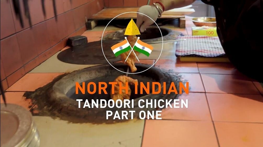 Kitchen scene with caption that reads: North Indian - Tandoori Chicken Part One