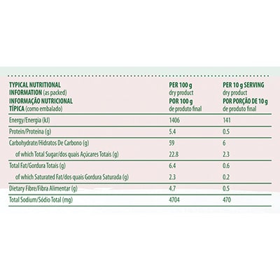 • 1 kg marinates up to 15 kg of protein.