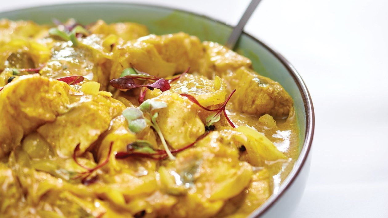 • Add bay leaves, black peppercorns, garlic and ginger and cook for 2 min. Add Robertsons Rajah Mild & Spicy, garam masala and turmeric and cook for 3 min.