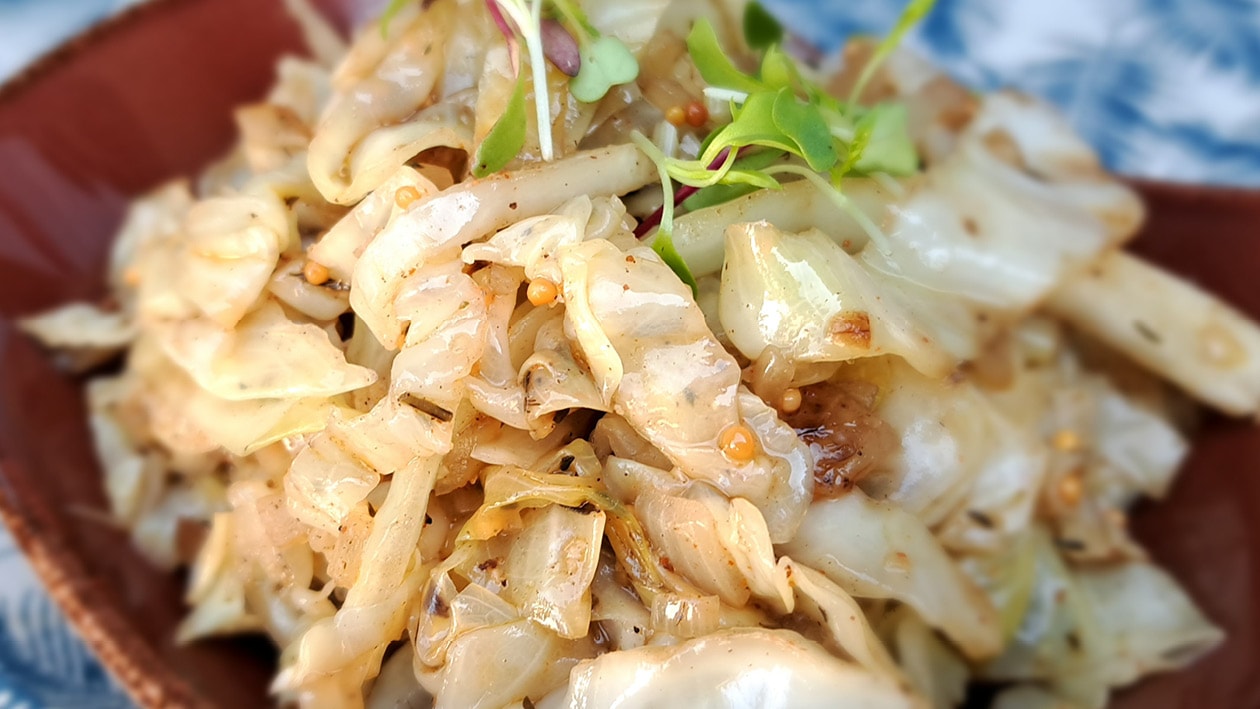 Perfectly cooked cabbage brought to life with a consistent BBQ smoky flavour, beer, mustard and thyme.