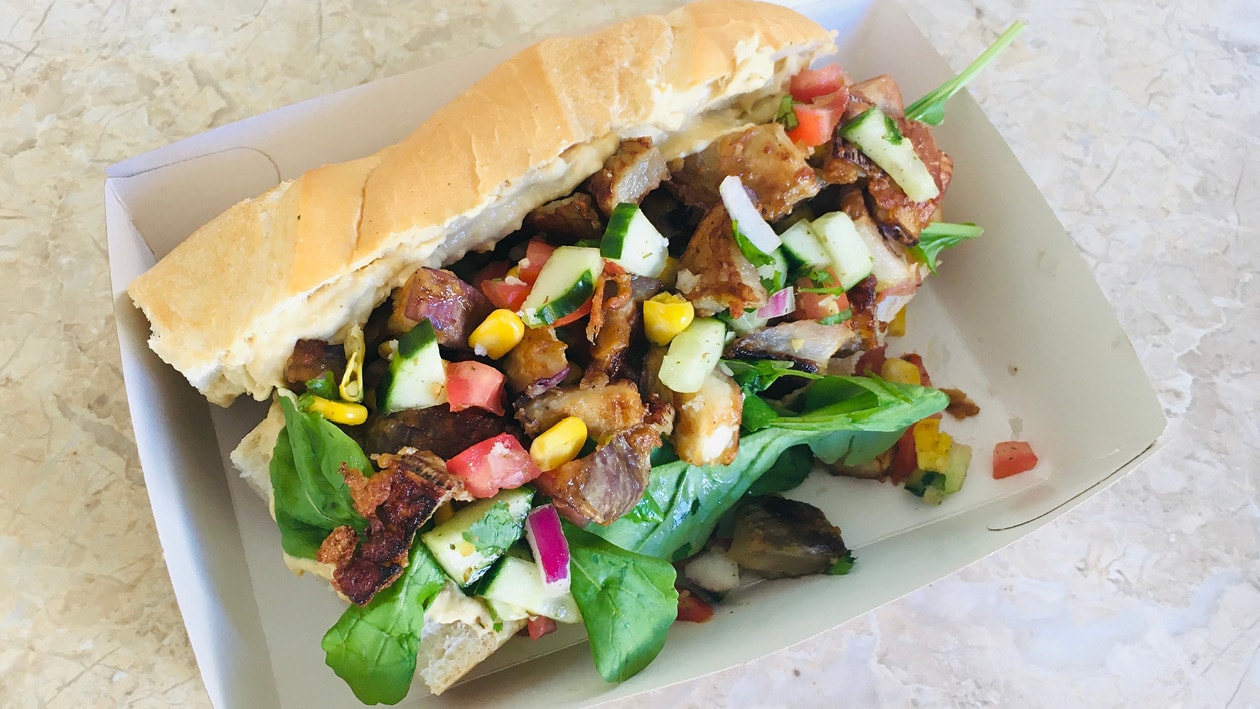 A wholesome combination of fried brinjal coated in Knorr Professional Original Chicken Breading, paired with a tangy chickpea mayo and freshly diced veggies on a baguette.