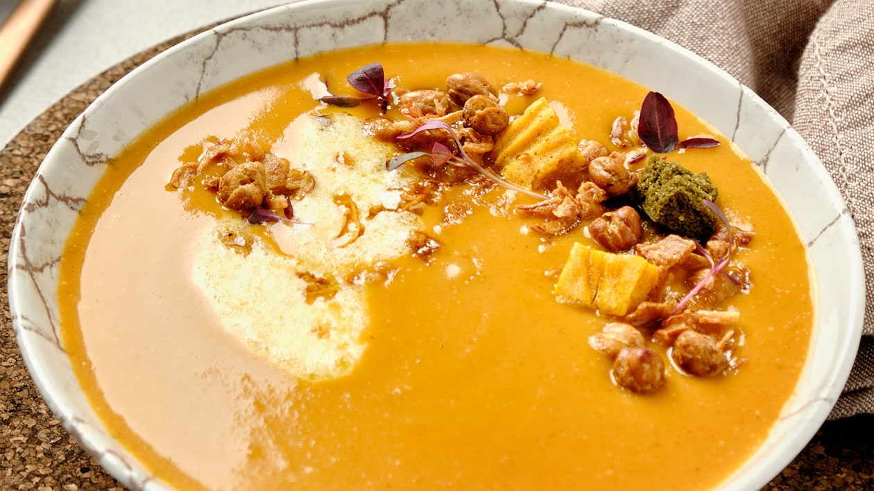 A spicy, creamy, and easy butternut soup! Made with potatoes, carrots, apple, and onion, and seasoned with Robertsons Cinnamon and Robertsons Smoked Paprika for that extra flavour burst!