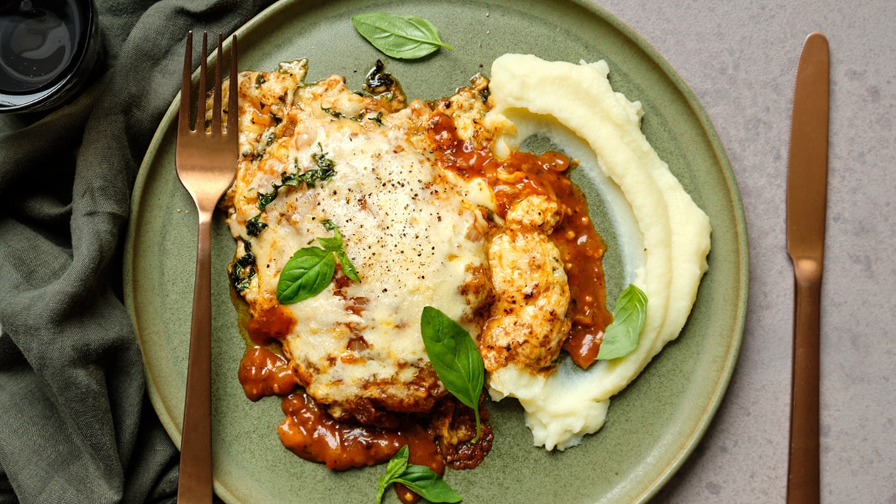 Golden and crispy chicken, fried to perfection and smothered in Prego sauce, topped with bubbling melted cheese. Does it get any better?