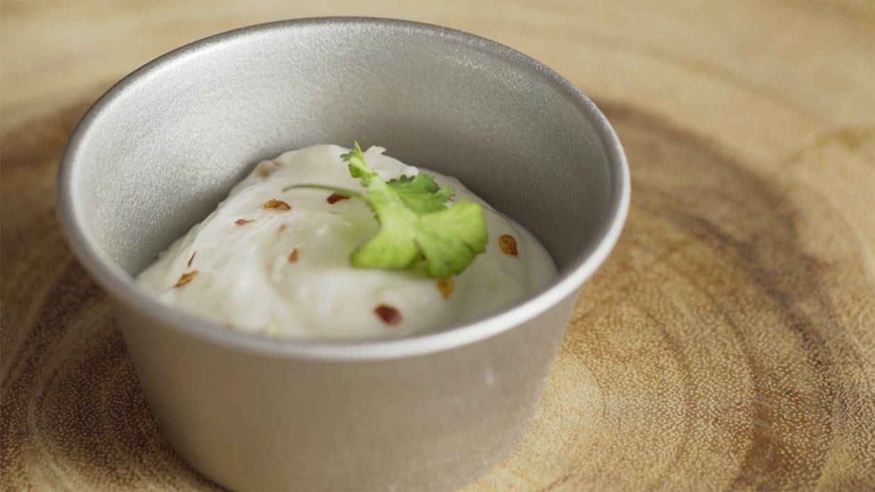 • Mix together 100gHellman's original mayo,30g crushed garlic cloves and 1g chili flakes.
