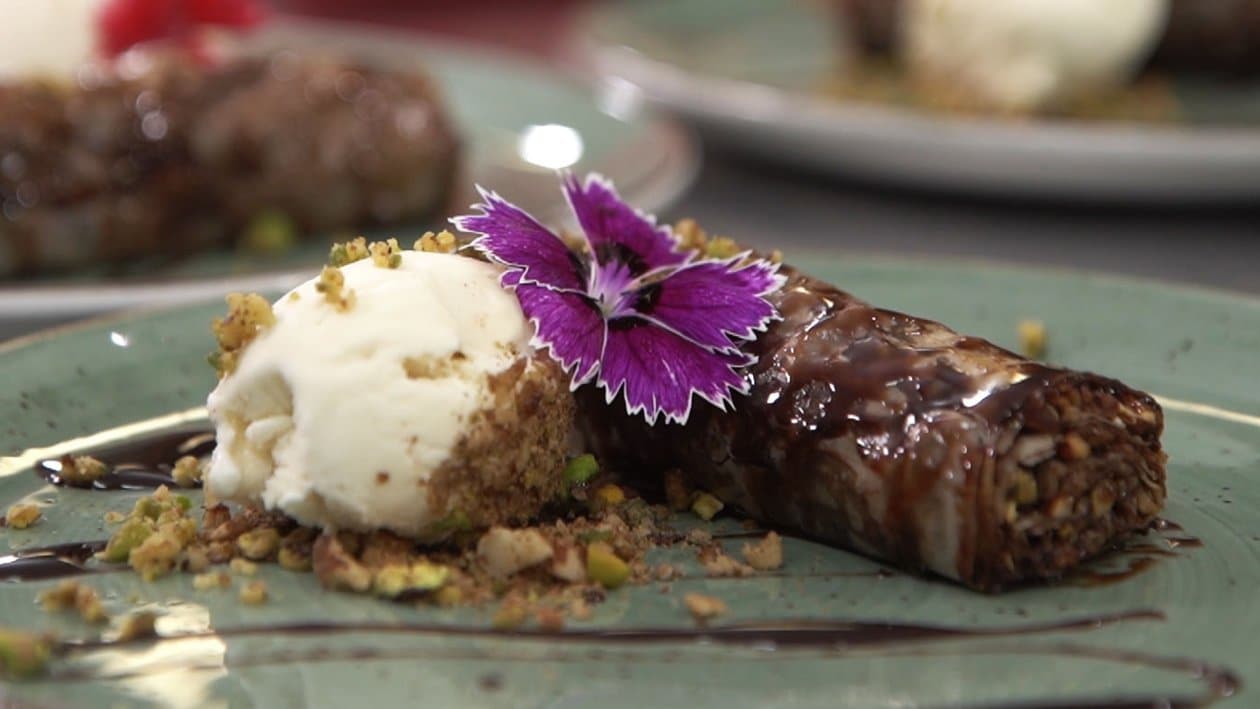 Baklava is delicious, but chocolate baklava is outstanding. Give your diners a sensational dessert experience with this new take on a traditional Greek dessert, featuring walnuts, pistachios, macadamia nuts, almonds, apples and chocolate.