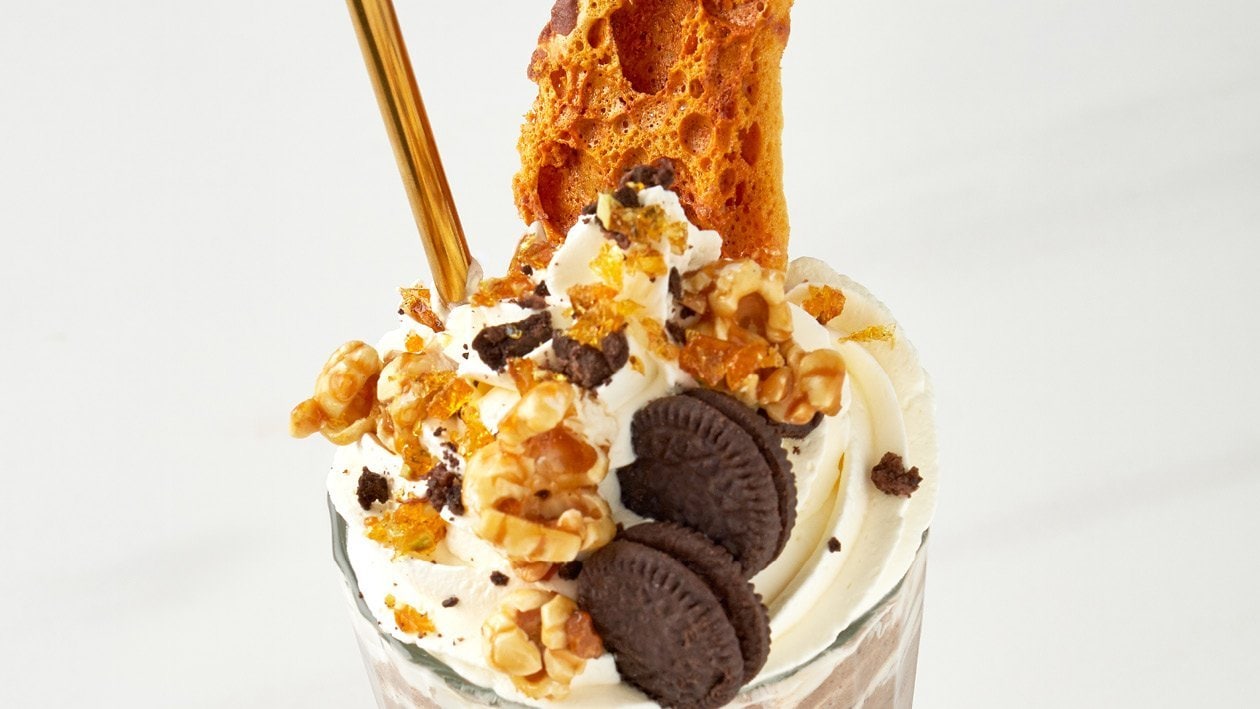 In the Chocolate Pop Shake, chocolate and salted caramel combine for a decadent milkshake experience. Topped with caramel popcorn and chocolate sauce, this will keep guests smiling for days.
