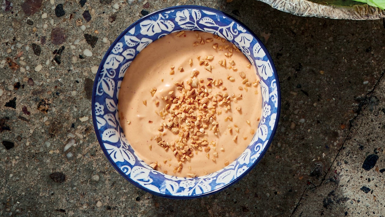 Nutty, creamy, and packed with punch! This Vietnamese-inspired dip layers peanut butter, coconut cream, and Knorr Professional Chicken Stock Granules for deep, savoury flavour. Finished with lime, sesame oil, mayo, and crushed peanuts – it’s sweet, spicy, and perfect for drizzling or dipping