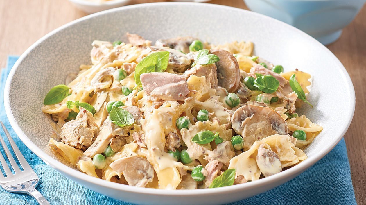 A simple pasta dish with plenty of vegetables in a flavourful, creamy sauce of Knorr Professional Hollandaise Sauce with a bit of wholegrain mustard, perfect for the warmer months.
