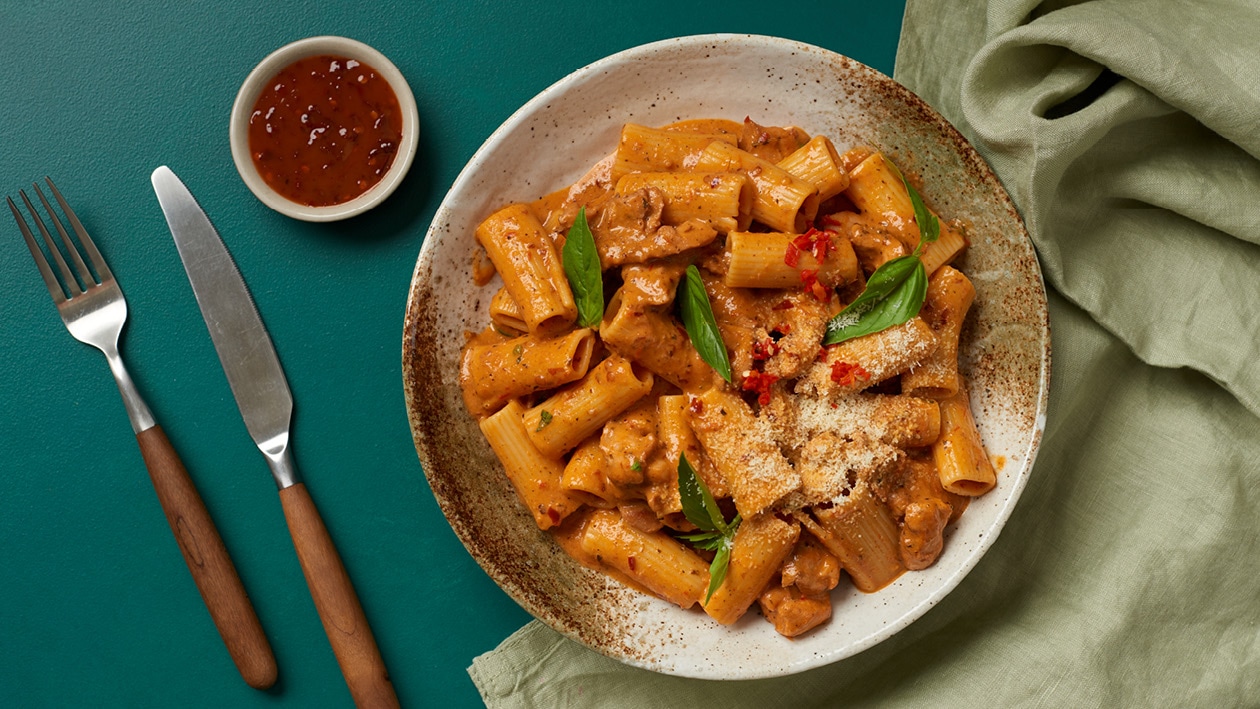 Creamy chicken rigatoni marinated in a delicious peri-peri sauce for an authentic, spicy flavour and great visual appeal.