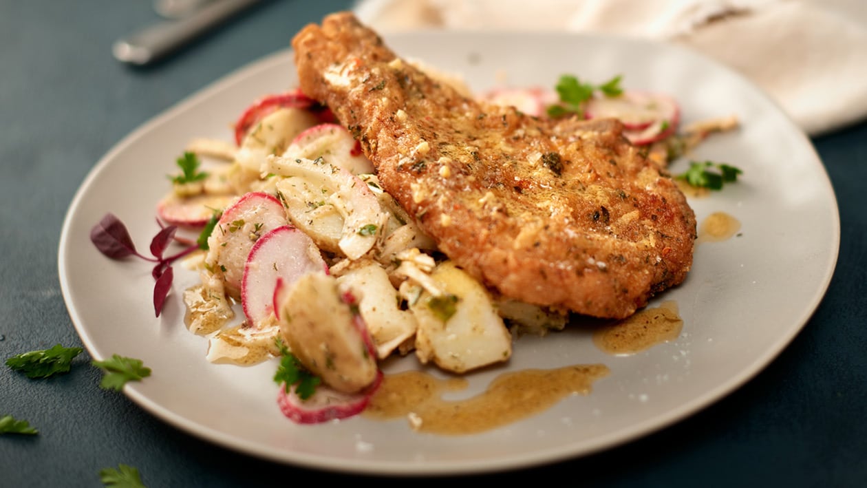 An elevated classic! Pork chops coated in a perfectly seasoned breadcrumb mixture then pan-fried to golden, crispy perfection.