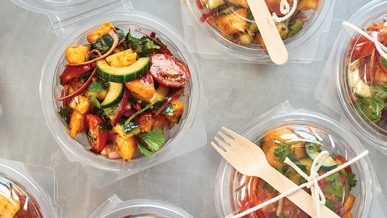 • Mix together all the cut-up ingredients. Allow to stand for 20 minutes before serving for the flavours to improve.