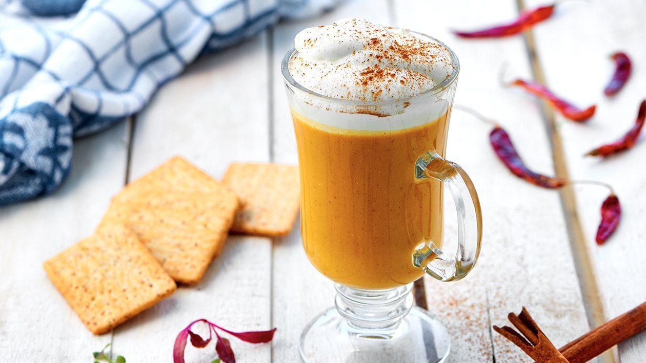 Fragrant Spicy Roasted vegetable soup topped with whipped  cream