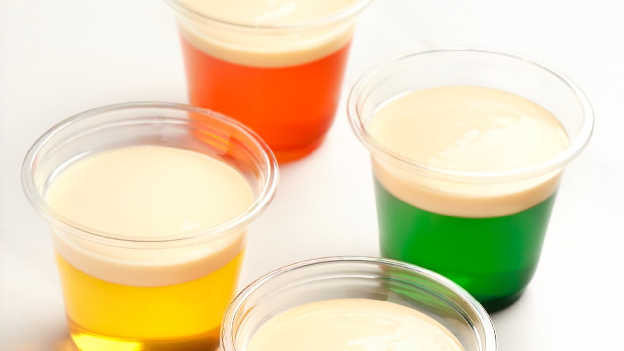 1. Mix Carte D’Or Strawberry Jelly granules with the boiling water until granules are dissolved, then add the cold water.