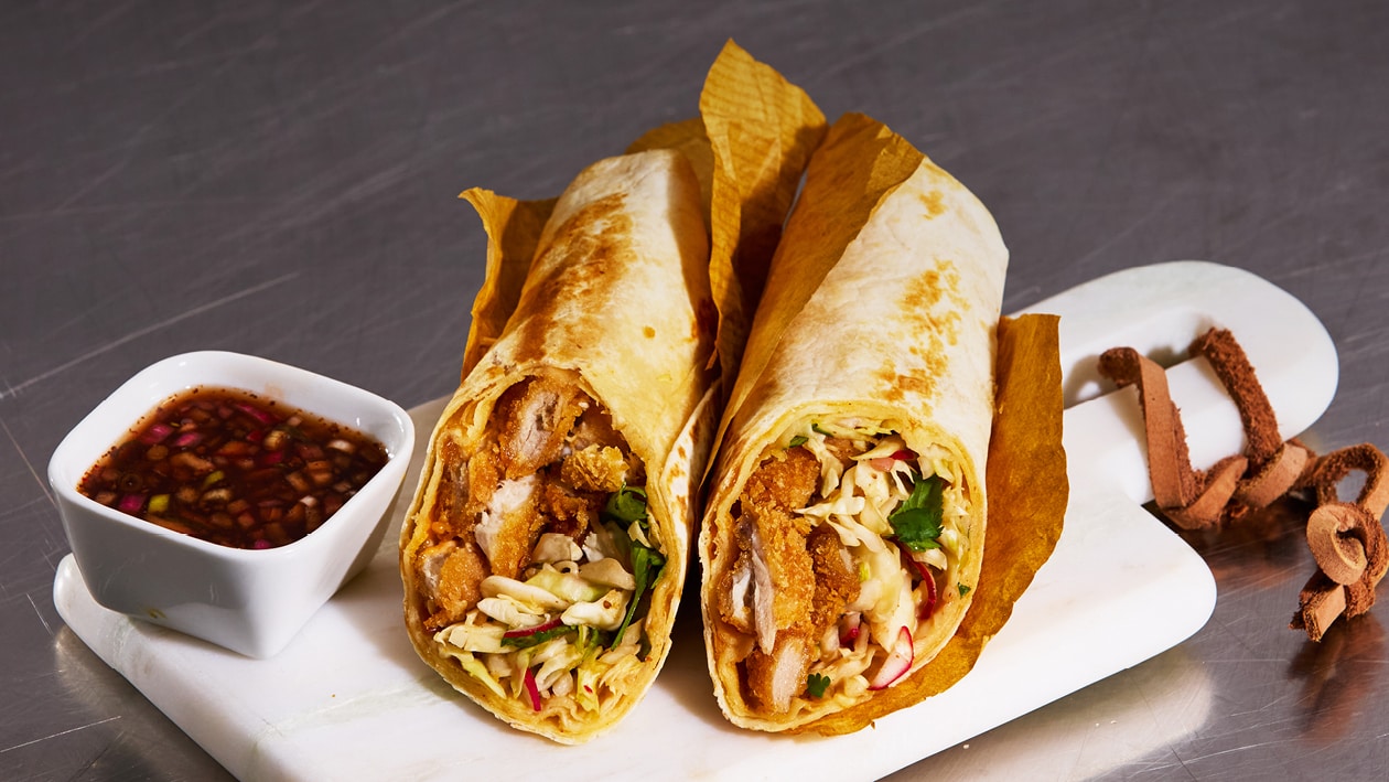 4. Cut the wrap and serve extra Citrus Gojuchang Sauce on the side.
