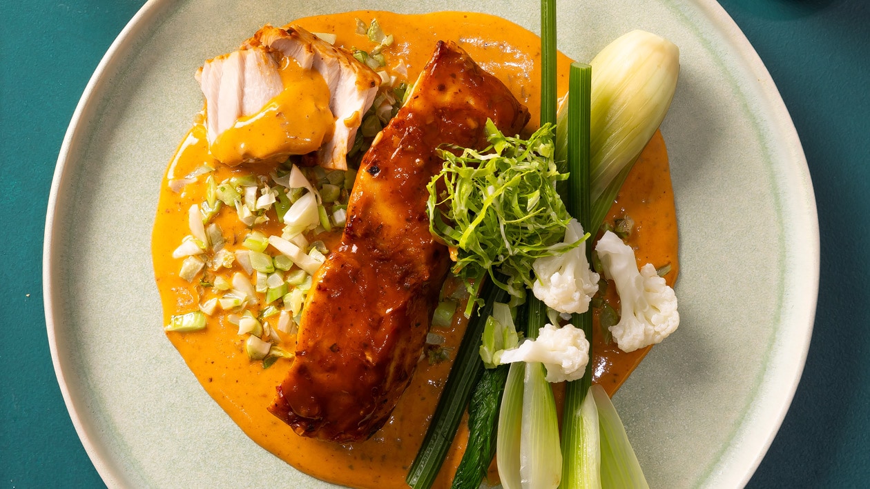 Tender fish dish enhanced with a creamy Prego marinade sauce served alongside fresh veggies or a zesty salad.