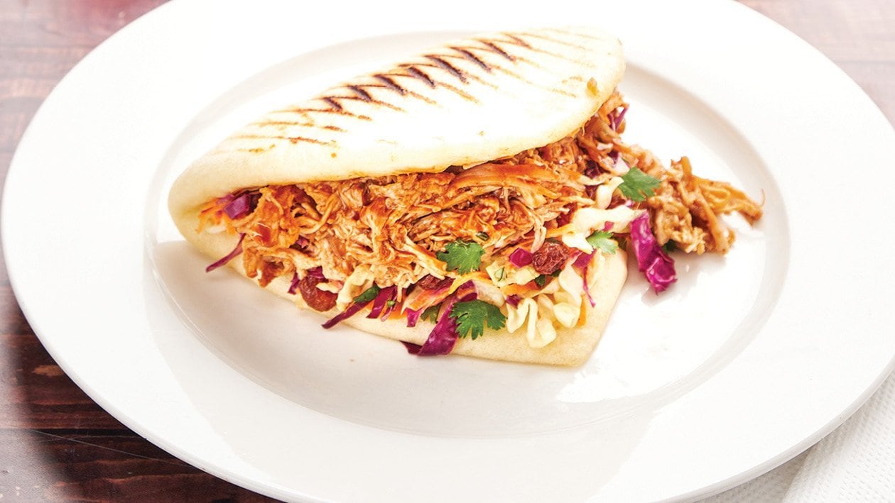 Barbecued chicken, with crunchy slaw served in a bao bun. It makes for the perfect on-the-go lunch!