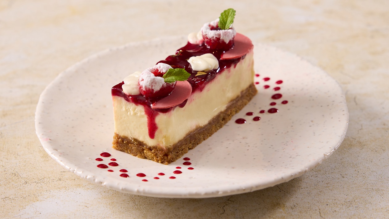 This creamy dessert features a tropical twist, combining a crunchy coconut biscuit base with a silky filling made from Carte D'or Cheesecake Mix and full-fat coconut cream. Folded with fresh raspberries and topped with a vibrant Carte D'or Wild Berry Sauce, it offers a refreshing balance of fruit and coconut.
