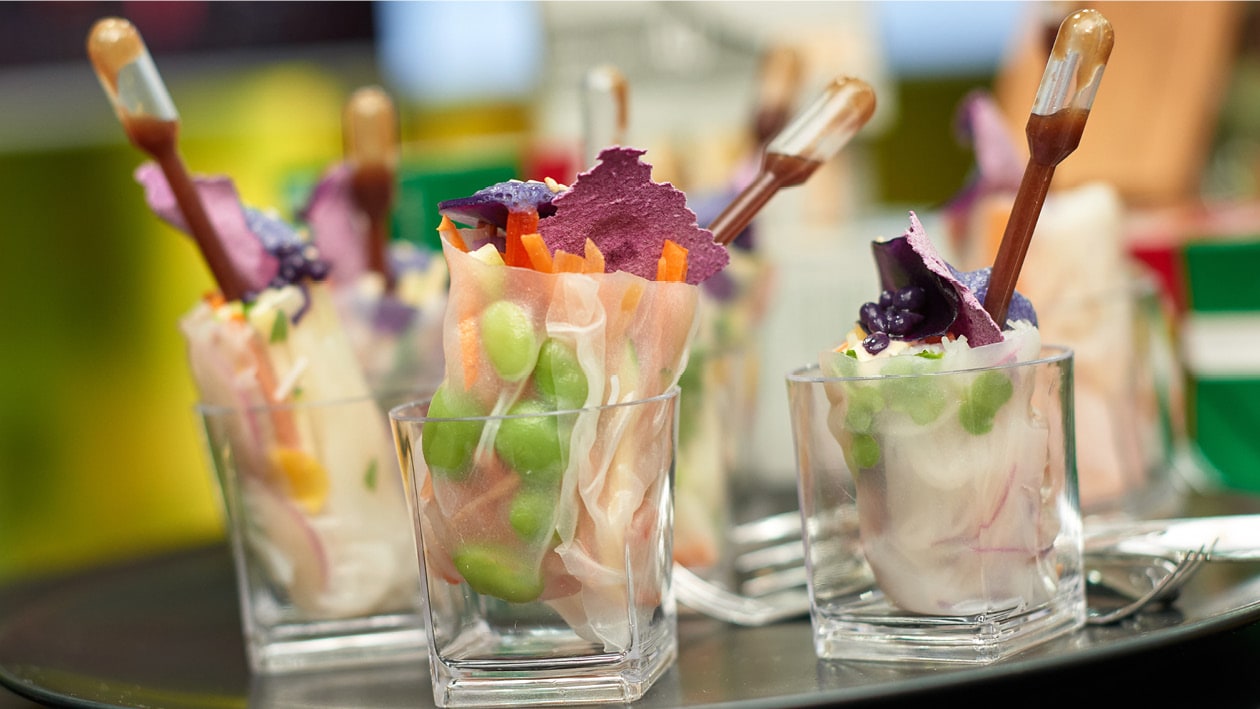 Vibrant and crisp red cabbage meets gourmet satisfaction! Rice paper wraps filled with unique red cabbage caviar bursting with tangy and savoury notes and various textures and flavours.