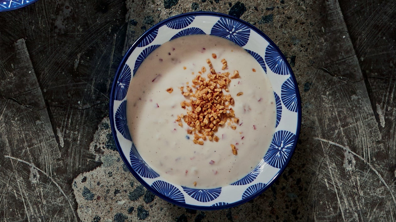 Filipino flavour with a twist! This bold mayo-based dressing brings together vinegar, calamansi, soy, and red chilli – rounded off with garlic, pepper, and crispy garlic on top. Made with Hellmann’s Original Mayonnaise, it’s perfect on rice, tacos, or as a crave-worthy dip.