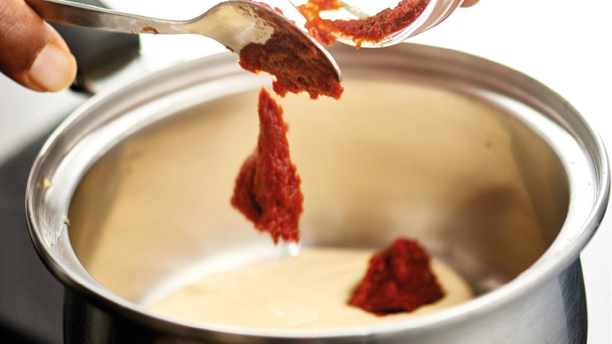 • Heat Knorr Hollandaise Sauce and add tomato paste. Simmer for 2 min and serve.