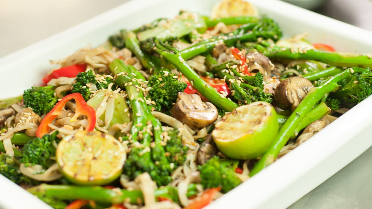 Delicious and easy Thai vegetable stir fry made with colourful mixed vegetables. Flavoured with a garlicky, sweet and zesty sauce made with basil pesto and Knorr Professional Soya Sauce.