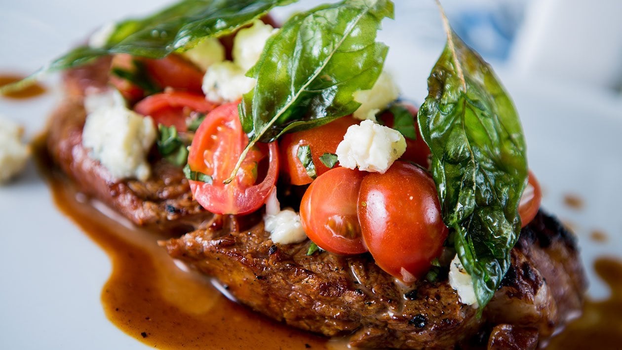 Creamy Italian Gorgonzola cheese is paired with classic Italian flavours of tomato & basil for this sirloin recipe.