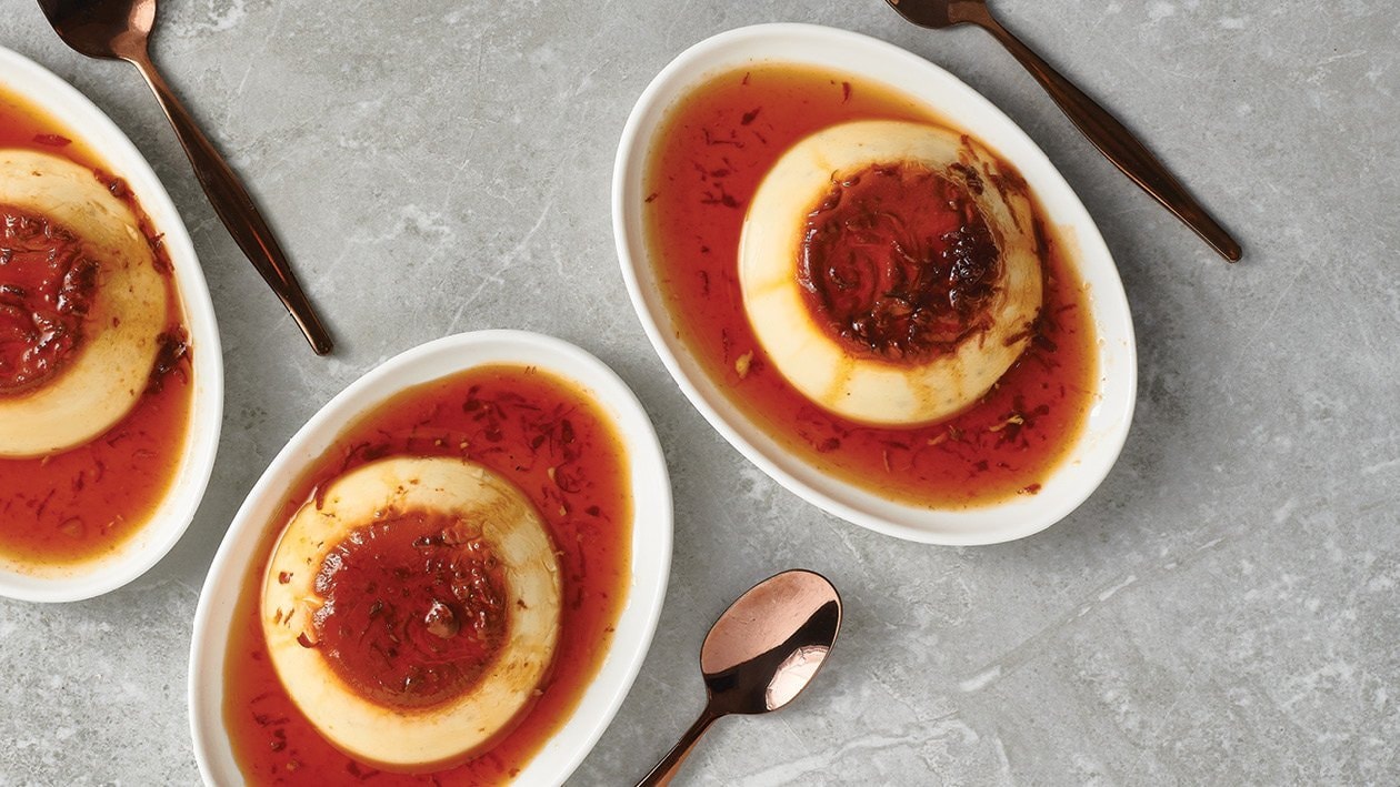 • Add boiling water and lemon zest to the Carte D’Or Crème Caramel powder and stir for 30 sec.