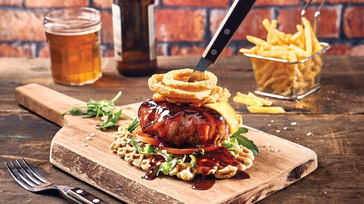 A twist on an original burger, this recipe substitutes waffles for burger buns. Fun and delicious!